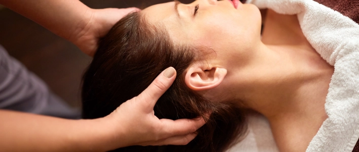 El masaje craneal es una experiencia única diseñada para liberar el estrés acumulado y regalarte una profunda sensación de calma. Durante 60 minutos se trabajan el cuero cabelludo, el cuello y el rostro con técnicas manuales que producen ese cosquilleo tan placentero cuando alguien te acaricia la cabeza o el pelo, una sensación que invita al descanso inmediato y hace que no quieras que pare.